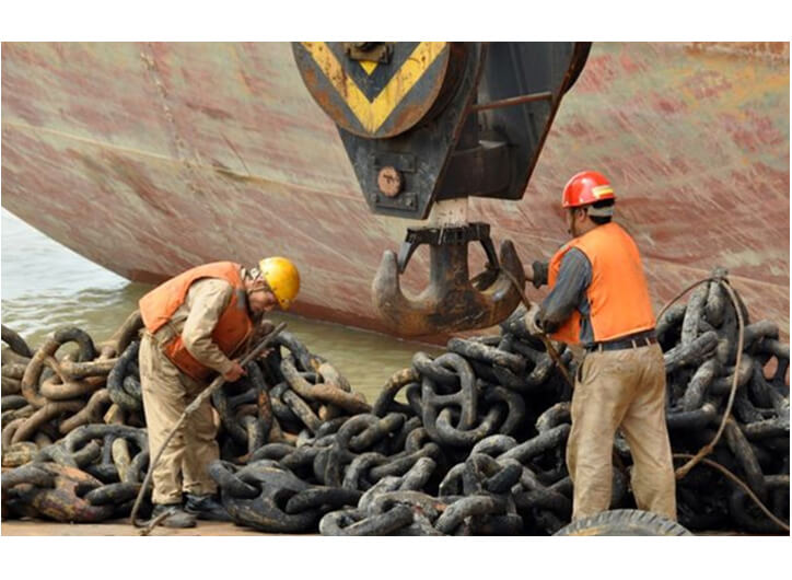 錨是一種鋼鐵制造的停船器具,沒有錨,船舶就無法停穩(wěn)。而對于鏈接船舶與錨的錨鏈,則更為重要,沒有錨鏈,錨就與船舶無法連接,錨的作用也就失去了意義。有時,船舶與船舶之間的錨鏈會因為各種原因相互纏繞在一起。